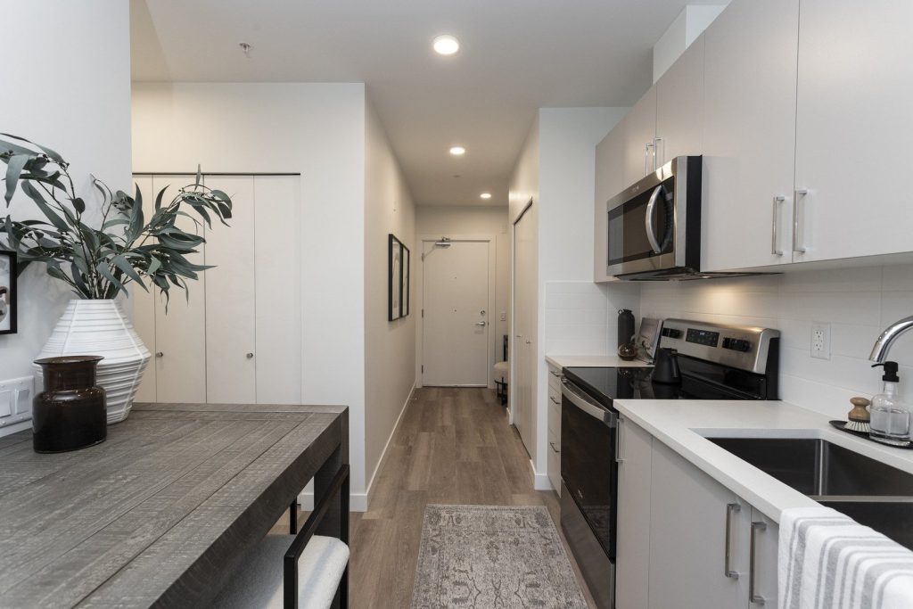 Welcome to the CoMo Apartments at 717 Como Lake Avenue, a brand new rental apartment community in Coquitlam, BC. This 6-storey new and high-quality rental development consists of 59 units, with bachelor to 1–3-bedroom suites ranging from 494 sq ft to 1,001 sq ft. The property is all rounded featuring an amenity room, bicycle storage, lockers, underground parking, rooftop patio, and a dog park.All units are equipped with in-suite laundry, energy-efficient, stainless-steel appliances, and feature modern and spacious layouts with contemporary finishes such as quartz countertops and luxury vinyl flooring.717 Como Lake Avenue’s premium location in Coquitlam, BC is in the heart of West Coquitlam, and within walking distance of parks, and many other local amenities. The site’s proximity to many retail amenities major outdoor recreational activities, like the Vancouver Golf Club, provides an enriched residential experience. Moreover, with close transit options and access to Clarke Road there is an easy commute around Coquitlam and only a 35-30min drive to Vancouver International Airport.The safest way to find your new home.On-line options available at all properties for ease of rental payments, maintenance requests, and communication with property management – all accessible from your preferred personal device.Please schedule a personalized video call or tour to view available units and amenities by calling, texting or emailing our leasing agents. Disclaimer – Photos, Video, and 360 Virtual Tour for reference only, which give a general sense of building & unit layouts and finishes. Available units and prices may vary based on unit size, location, features, finishes, floor plan, and the occupancy date. Prices stated on the website are starting prices for each unit type, and are subject to change without notice. Errors & Omissions Excepted (E&OE).Virtual Tour1 BedroomMaps