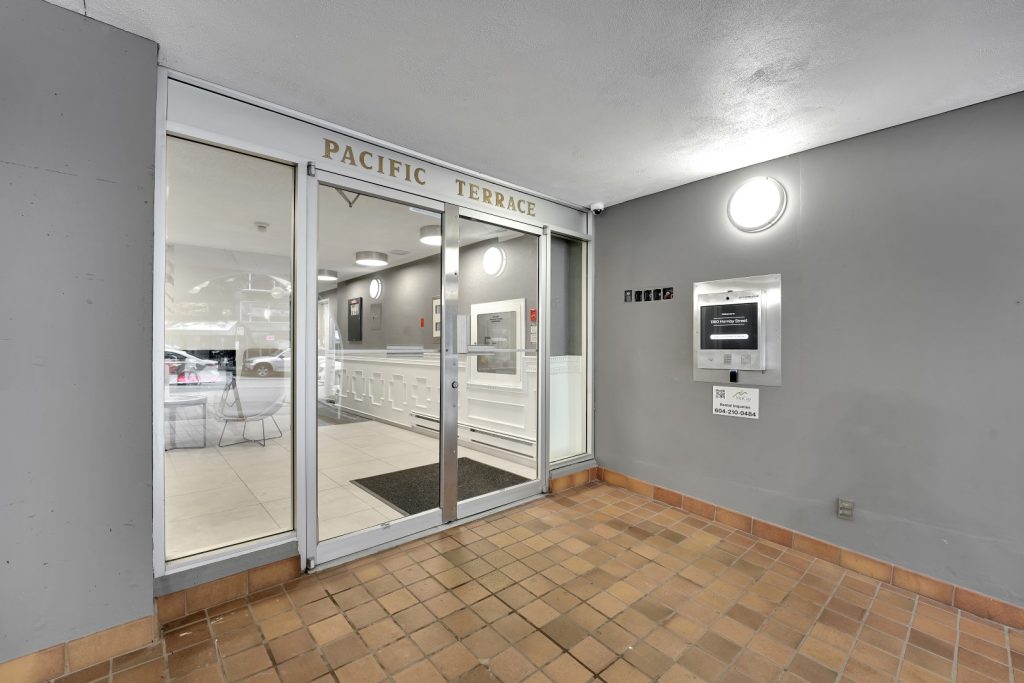 PACIFIC TERRACE APARTMENTS is located in Vancouver’s Downtown District, in the city’s primary business hub. The immediate area provides an abundance of amenities, entertainment venues, and vibrant residential communities. Pacifi c Terrace is nestled between the Yaletown and West End neighbourhoods, in historic False Creek North. Nearby amenities include Vancouver Acquatic Center, St Paul’s Hospital, Century Plaza Hotel & Spa, Sheraton Wall Centre, Nelson Square Plaza, The UPS Store, Maxine’s Cafe & Bar, Esso, Starbucks, Breka Bakery, Subway. University Canada West (UWC) is also nearby.The safest way to find your new home.On-line options available at all properties for ease of rental payments, maintenance requests, and communication with property management – all accessible from your preferred personal device.Please schedule a personalized video call or tour to view available units and amenities by calling, texting or emailing our leasing agents. Disclaimer – Photos, Video, and 360 Virtual Tour for reference only, which give a general sense of building & unit layouts and finishes. Available units and prices may vary based on unit size, location, features, finishes, floor plan, and the occupancy date. Prices stated on the website are starting prices for each unit type, and are subject to change without notice. Errors & Omissions Excepted (E&OE).Virtual TourBachelor1 Bedroom2 BedroomsMaps