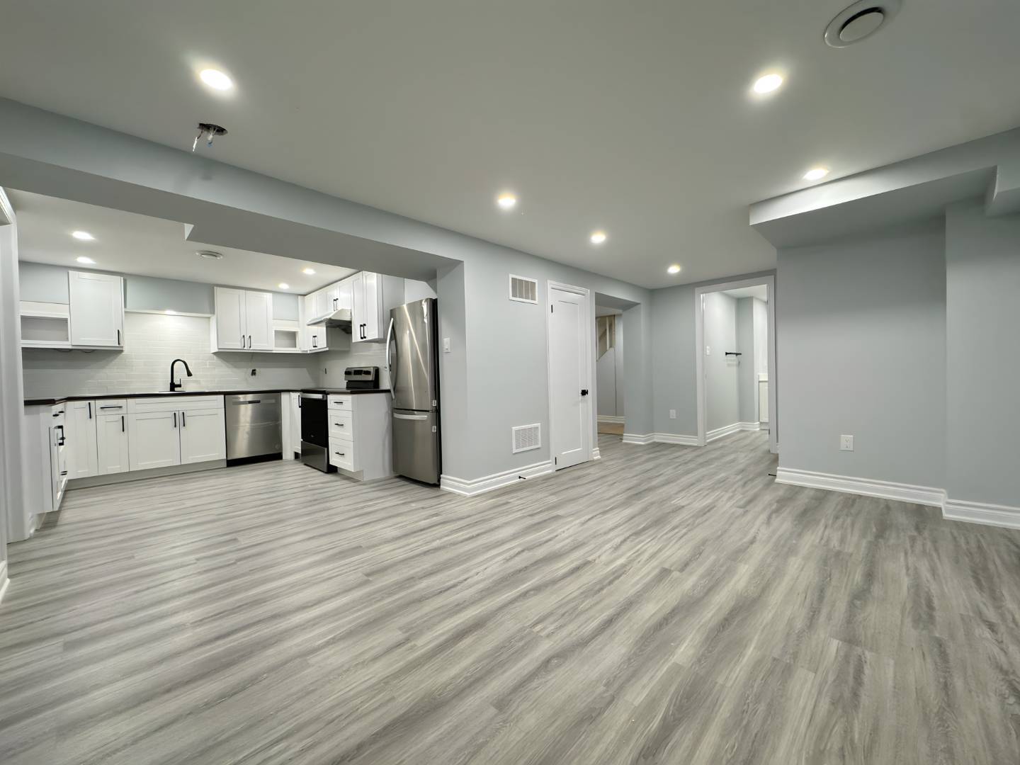 Open Concept Living Room and Dining Room: The open-concept layout provides ample space for a large living room setup and a dining table, perfect for entertaining guests or relaxing with your family.