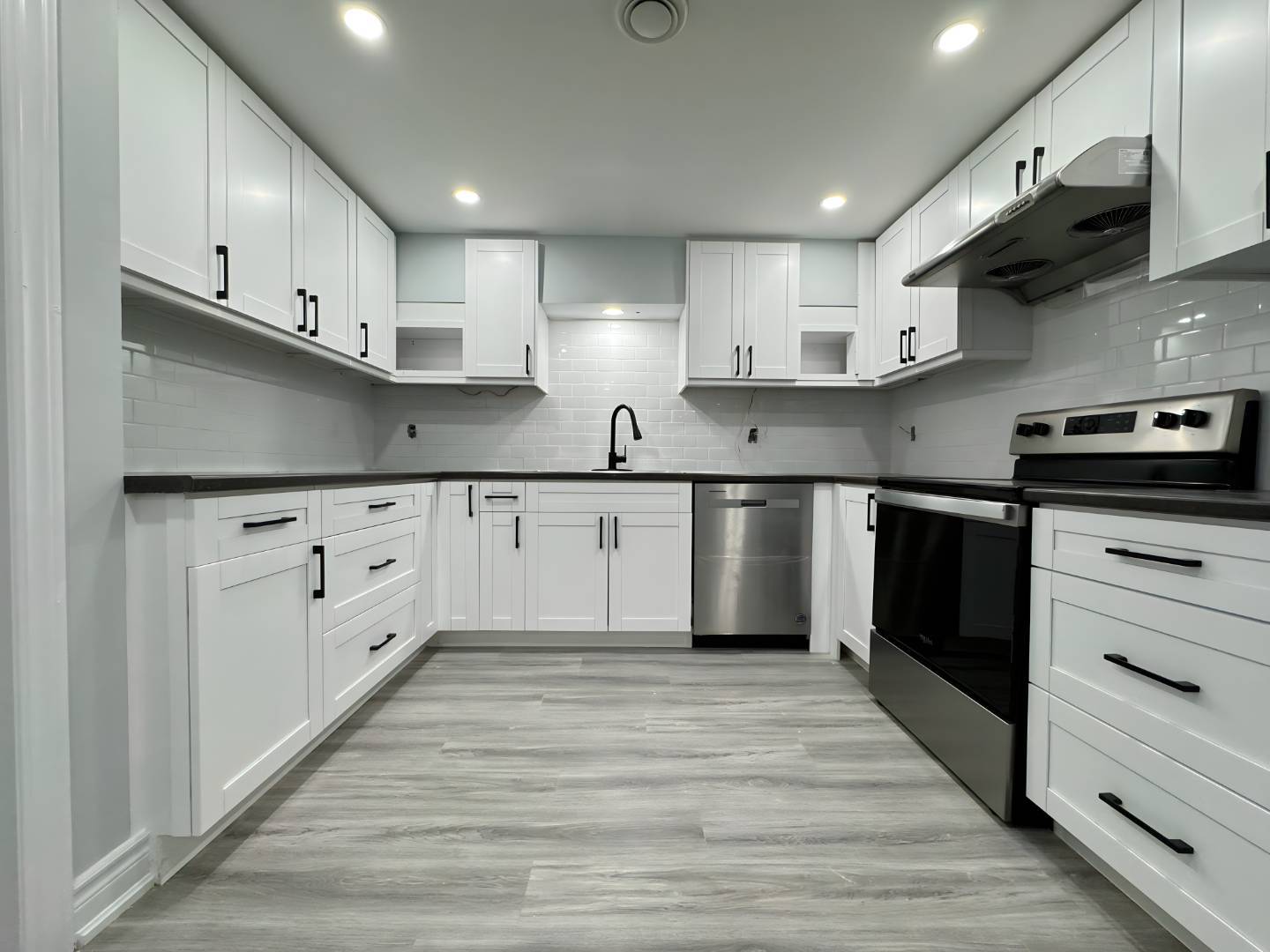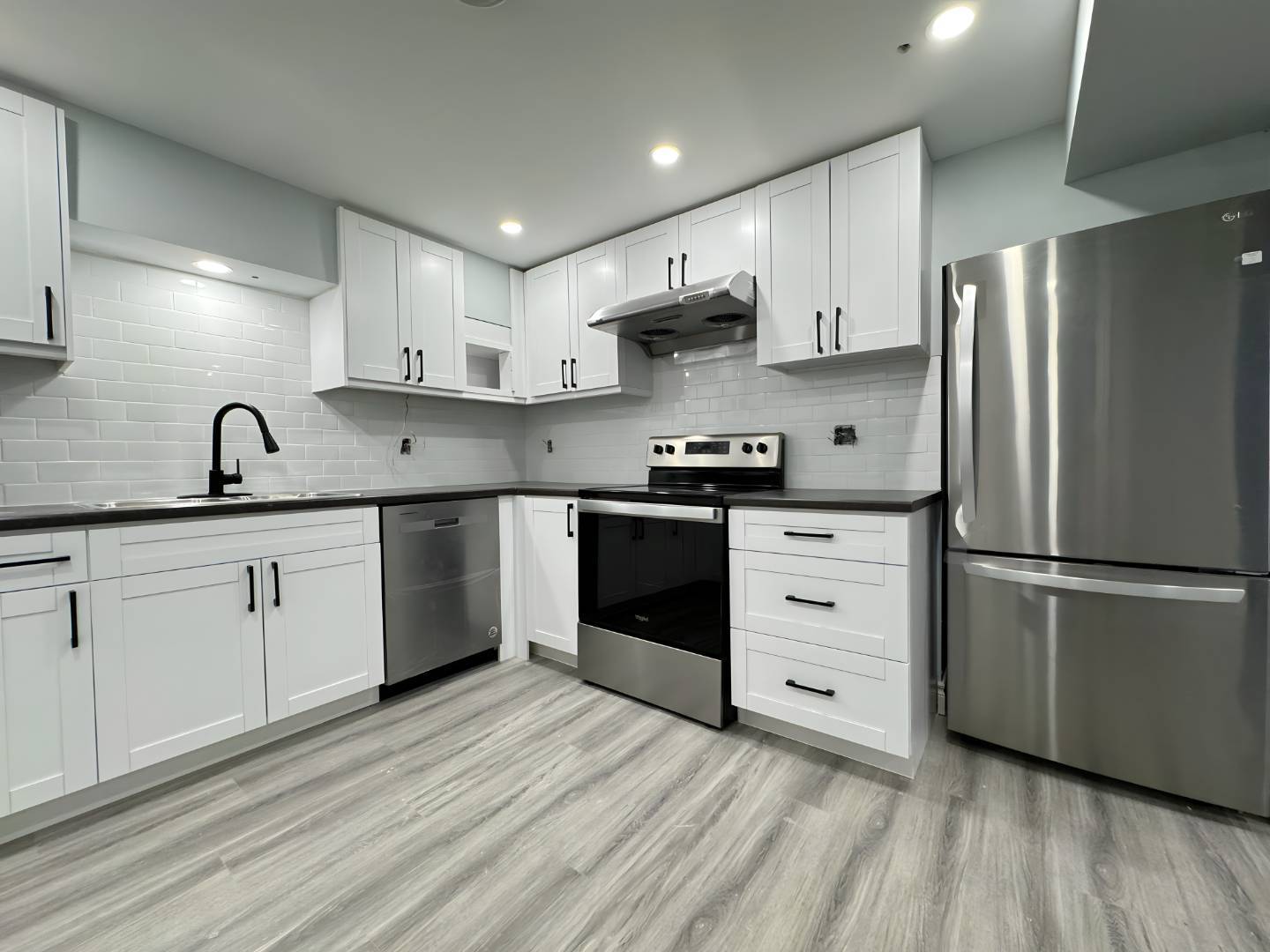 Fully Equipped Kitchen: The kitchen comes fully equipped with all stainless steel appliances, including a dishwasher. It also offers lots of cabinet space for storage.
