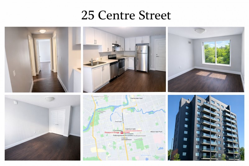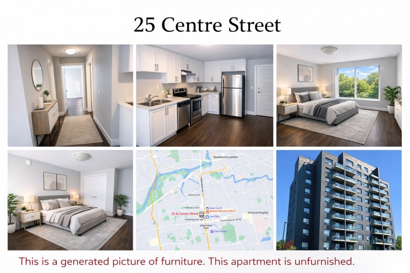 Bright and modern 2-bedroom, 1-bathroom apartment at 25 Centre Street, London, ON. This 723 sq. ft. unit features in-unit laundry, self-contained heating and air conditioning, and heating included in rent. Hydro and water not included. The building is pet-friendly and has an elevator for easy access.