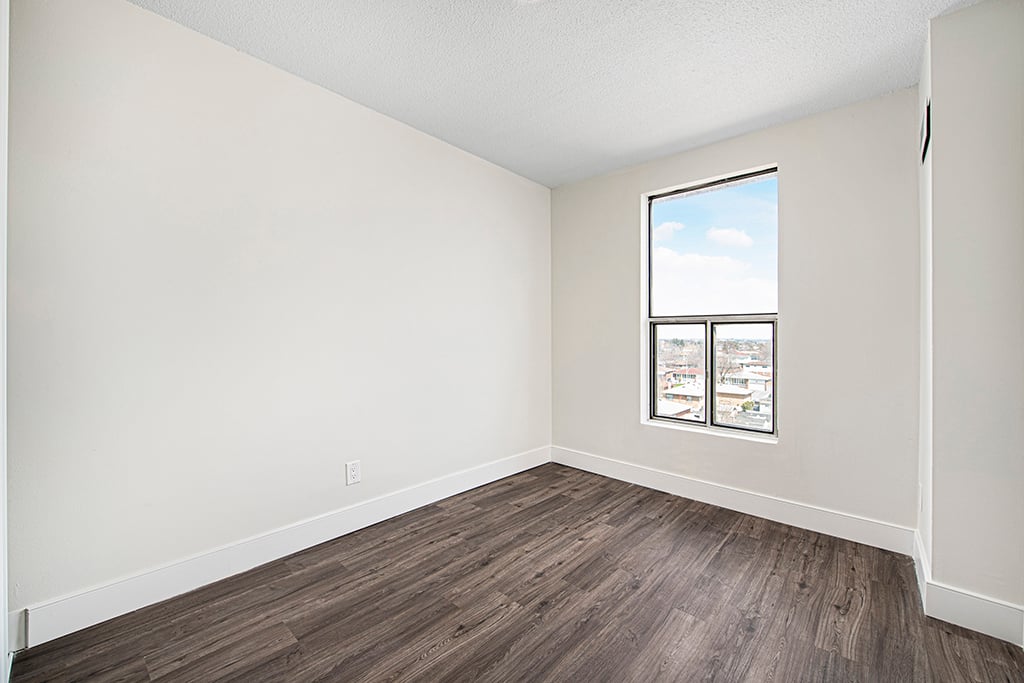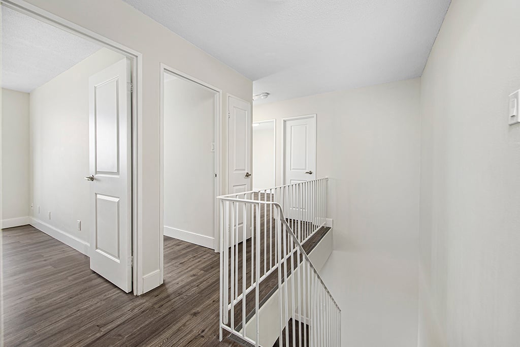 Over 1,000 square feet, newly renovated units.7230 Darcel Avenue is located in a quiet residential area backing onto park land near Goreway and Derry Road in Mississauga, we are conveniently located close to shopping, transit, schools, major highways and the airport. The neighbouring Malton Community Centre offers quality amenities, fitness centre, arena, gymnasium, library, sports fields and playground. The building offers air conditioning, parking and laundry facilities. The newly renovated large 2-storey suites are available in 2 or 3 bedrooms with main floor dens, balconies, in-suite laundry hook-ups and hardwood floors. Your renovated suite offers an open-concept kitchen featuring modern features and finishes including chrome accents, breakfast bar, laminate countertops, new overmount sink, and tiled backsplash. A full stainless-steel appliance package is included. Bathrooms include upgraded fixtures, new mirror, and new vanity with laminate countertop. Throughout the unit you will find newly finished flooring – either polished and refinished parquet flooring or luxury vinyl plank flooring – new tiles in the kitchen and bathrooms, and brand-new light fixtures. Interior walls and doors have been upgraded with fresh paint and modern hardware to complete the look and feel of your bright and modern space. Heat and water are included. Residents enjoy the convenience of the location and living among the serenity of a lovely neighbourhood. The safest way to find your new home.On-line options available at all properties for ease of rental payments, maintenance requests, and communication with property management – all accessible from your preferred personal device.Please schedule a personalized video call or tour to view available units and amenities by calling, texting or emailing our leasing agents. Disclaimer – Photos, Video, and 360 Virtual Tour for reference only, which give a general sense of building & unit layouts and finishes. Available units and prices may vary based on unit size, location, features, finishes, floor plan, and the occupancy date. Prices stated on the website are starting prices for each unit type, and are subject to change without notice. Errors & Omissions Excepted (E&OE).Virtual Tour | 2 Bedrooms + DenVirtual Tour | 4 BedroomsMaps