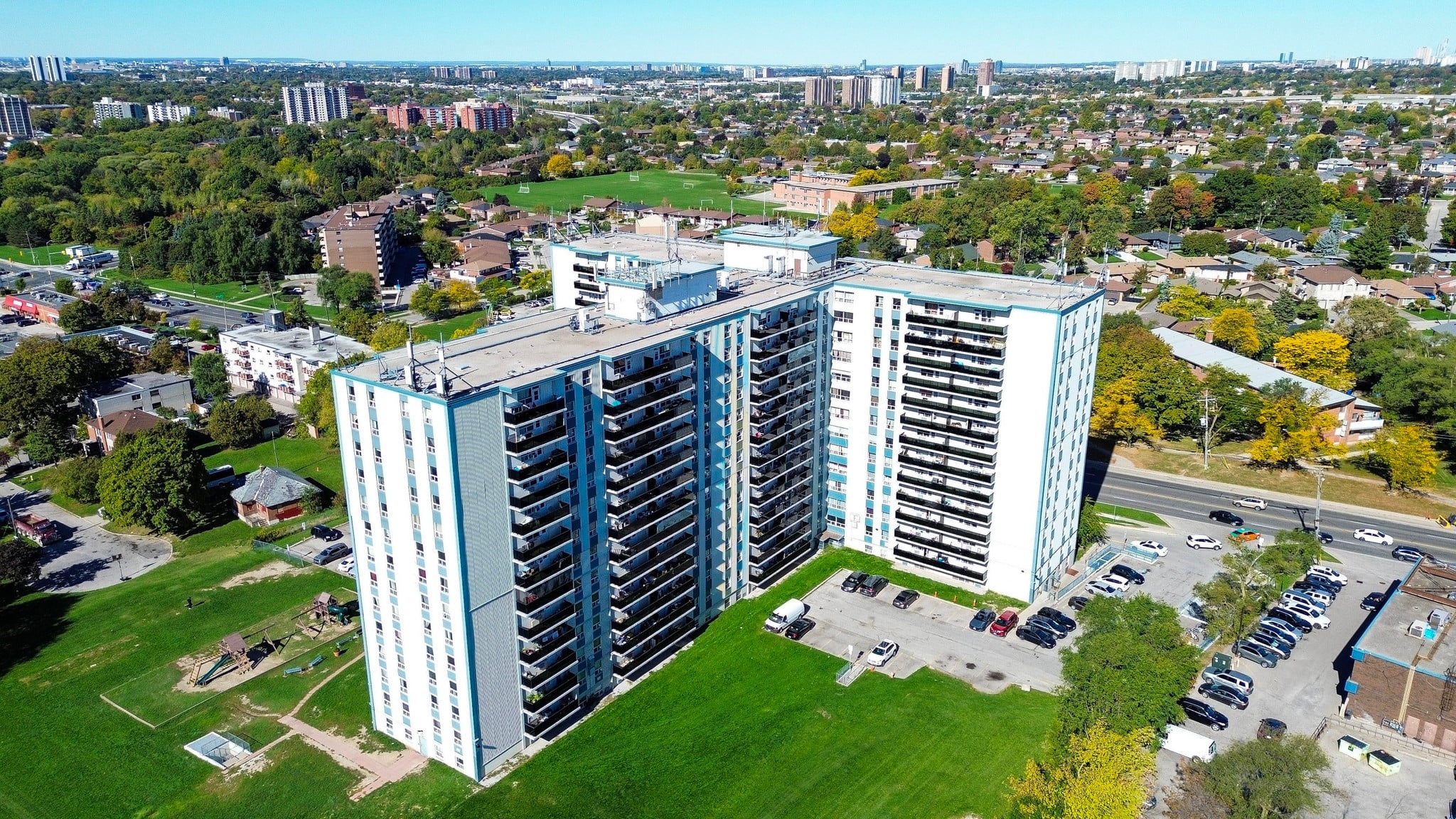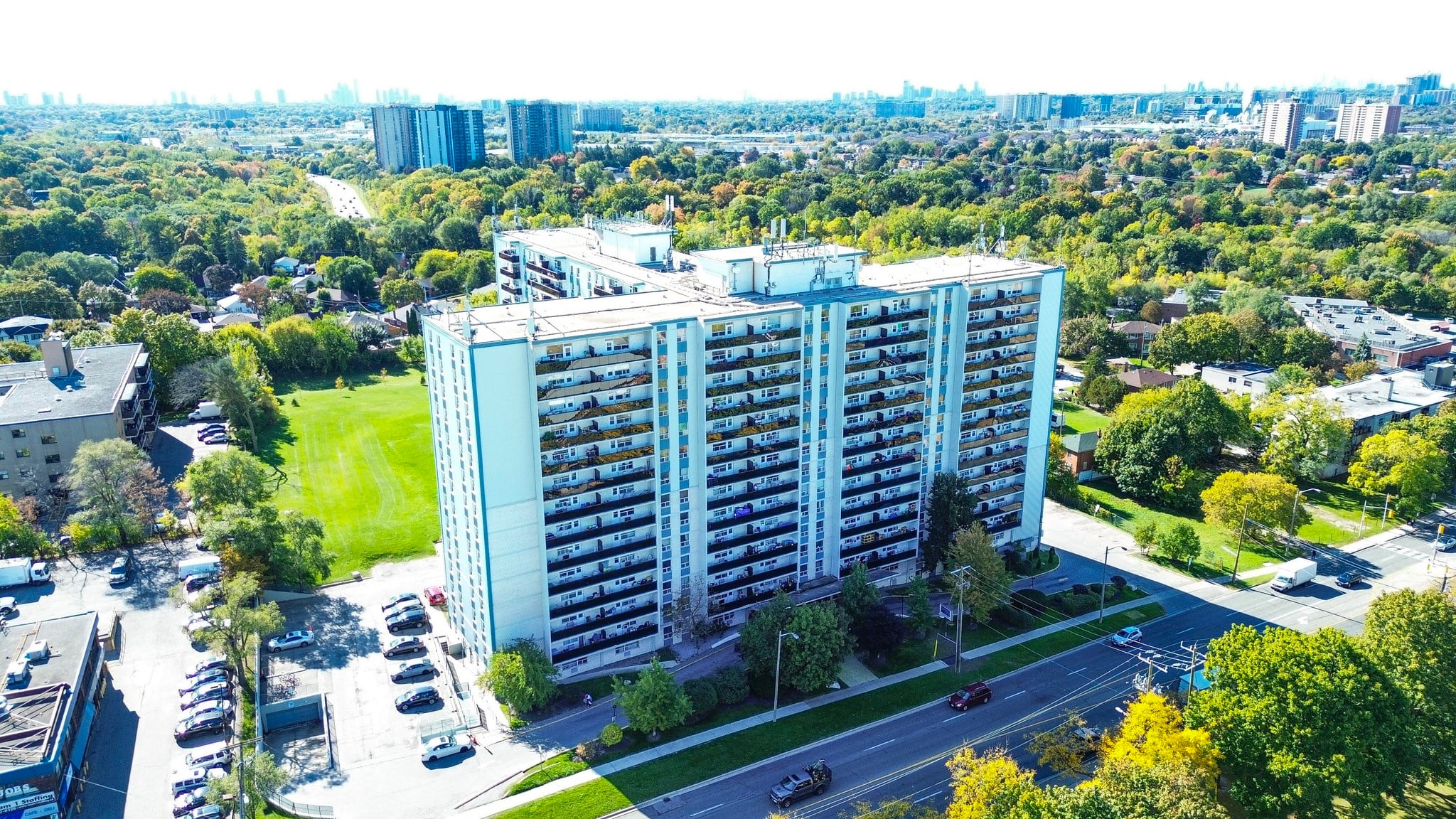 Welcome to 1577 Lawrence Avenue West – Comfortable, Connected Urban Living. 1577 Lawrence Avenue West is a well-maintained residential property offering 1, 2, and 3 bedroom suites designed for versatile city living. Each suite features durable finishes, functional layouts, and thoughtful interiors, while private balconies provide views of nearby Amesbury Park, Olympia Park, and Black Creek trails. On-site amenities include laundry facilities, indoor and outdoor parking, secure bicycle storage, a security system, and an on-site management office, ensuring comfort, convenience, and peace of mind.