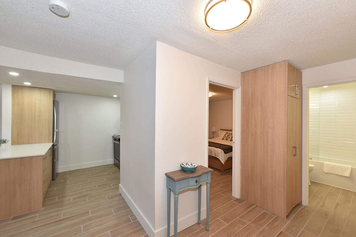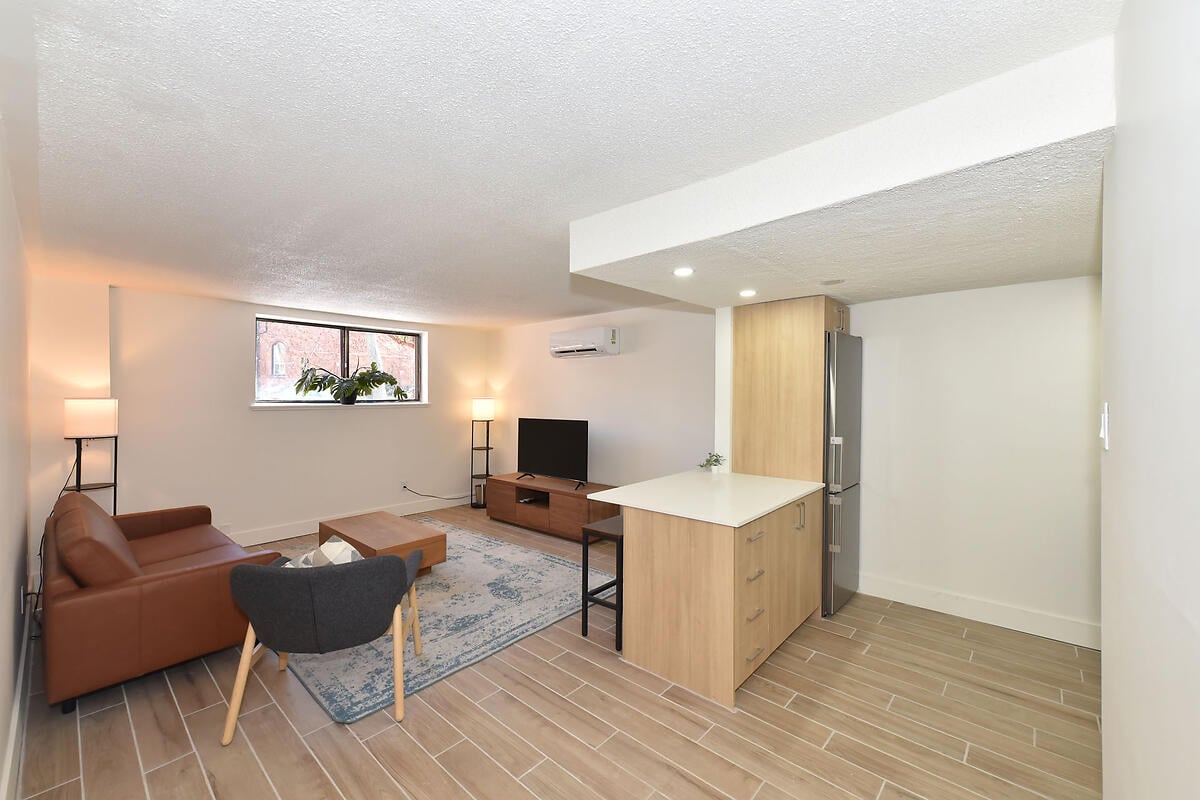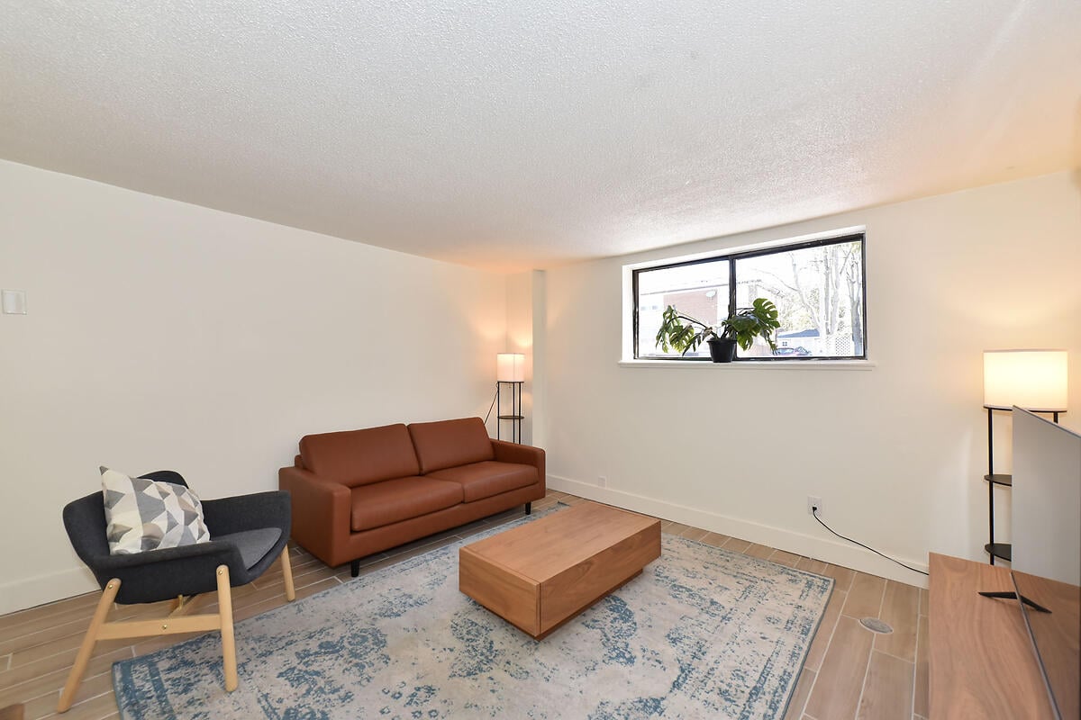 Stylishly furnished with modern EQ3 furniture, this 600 sq ft suite offers comfort, space, and convenience β all move-in ready.
