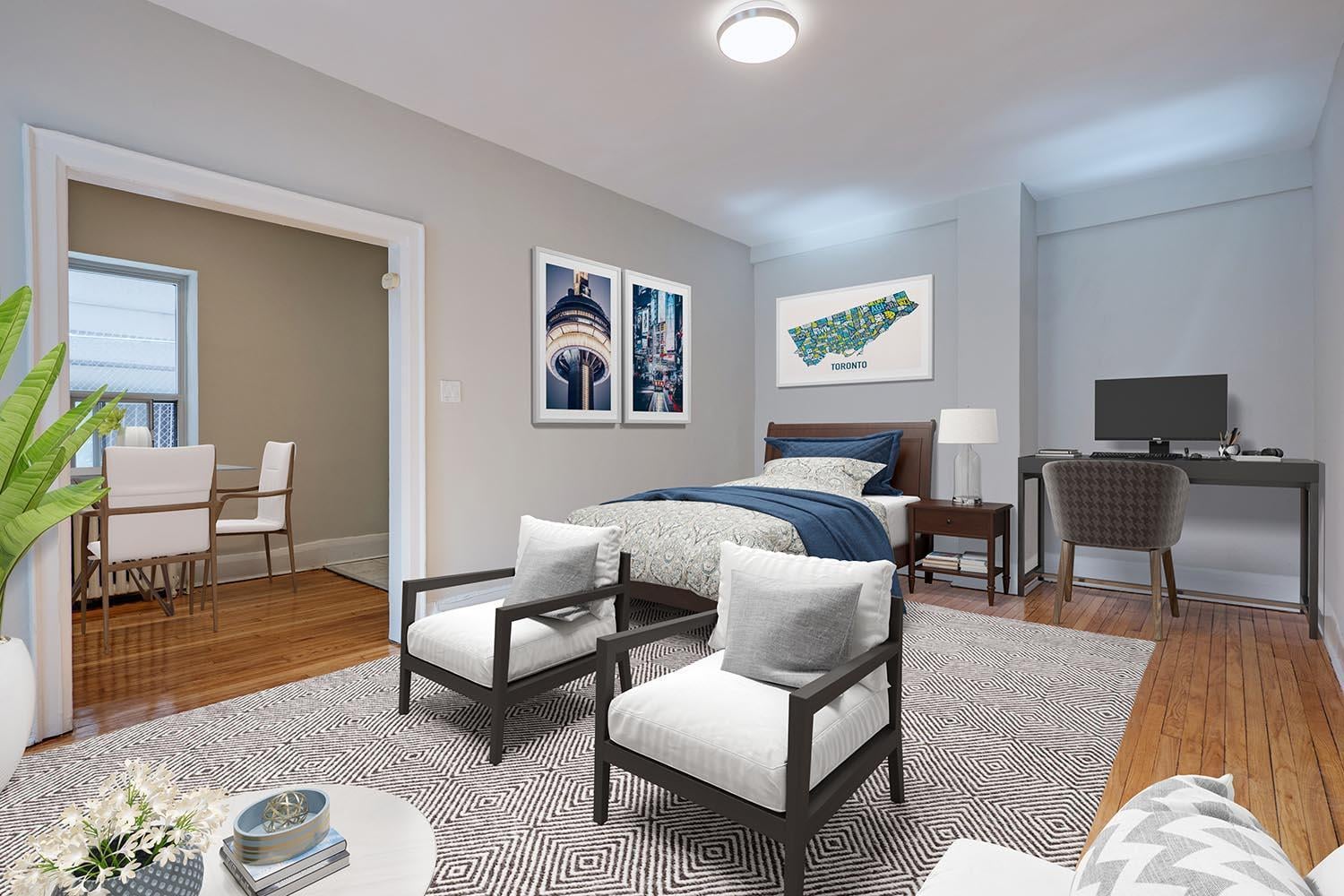 Live in the heart of Toronto’s Church-Yonge Corridor at 262 Jarvis Street! This beautiful rent-controlled, student-focused property features renovated bachelor suites with premium finishes, including stainless steel appliances and air conditioning coming soon. Enjoy breathtaking city views, on-site laundry, a social lounge, controlled building entry, and convenient online payments and maintenance requests.
